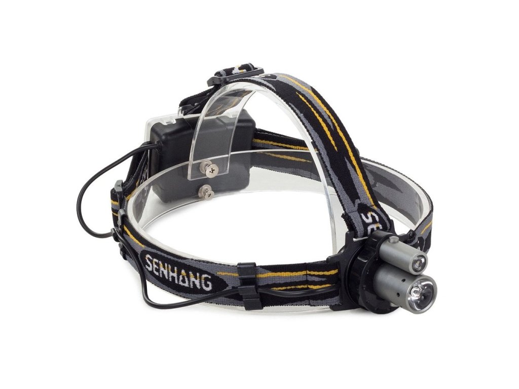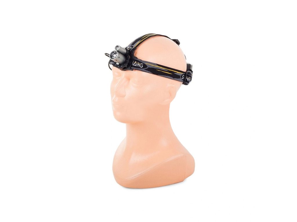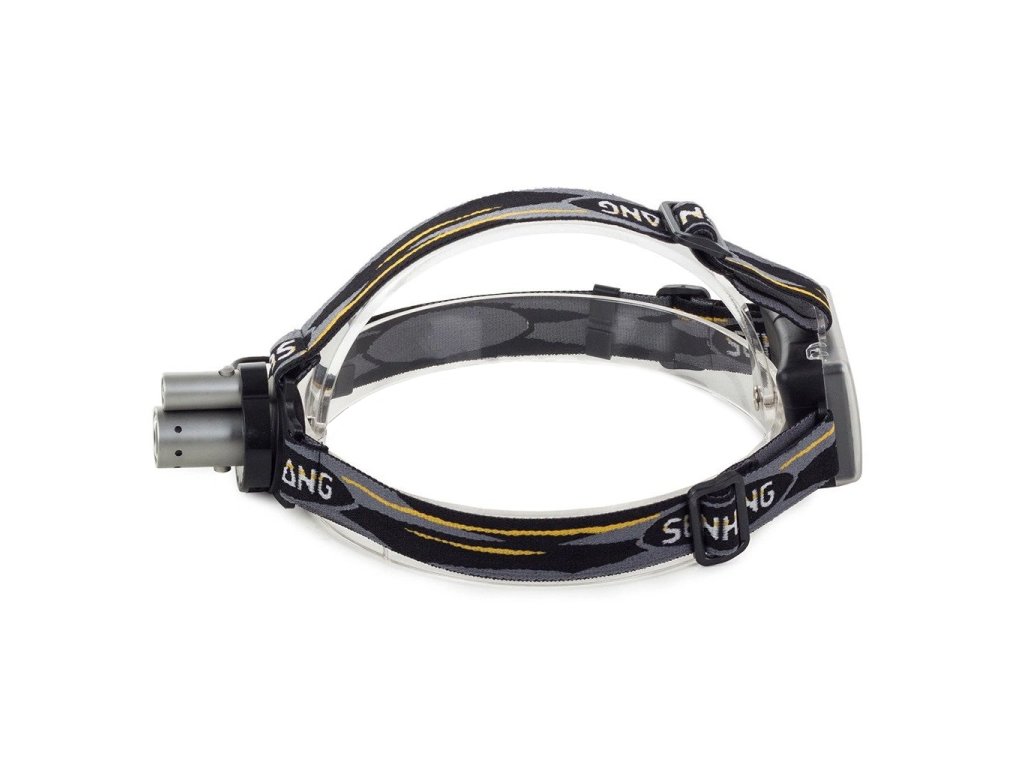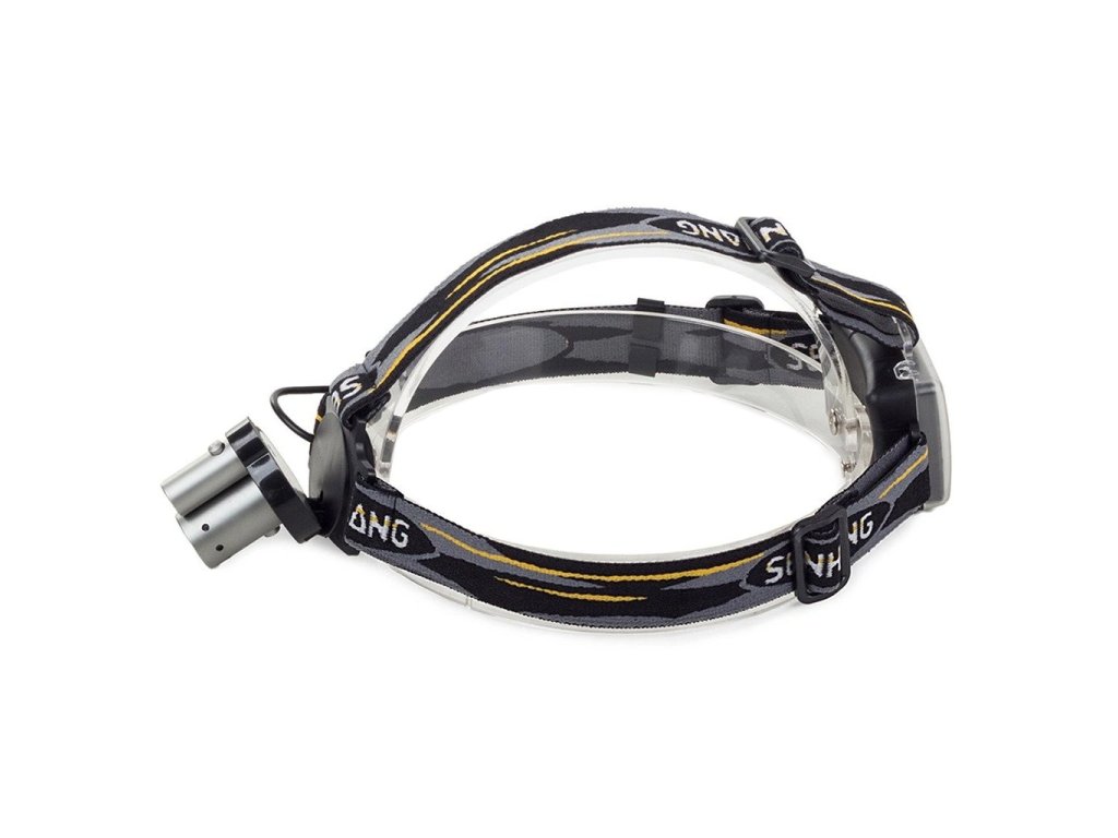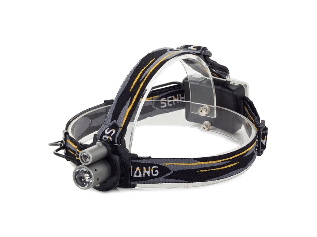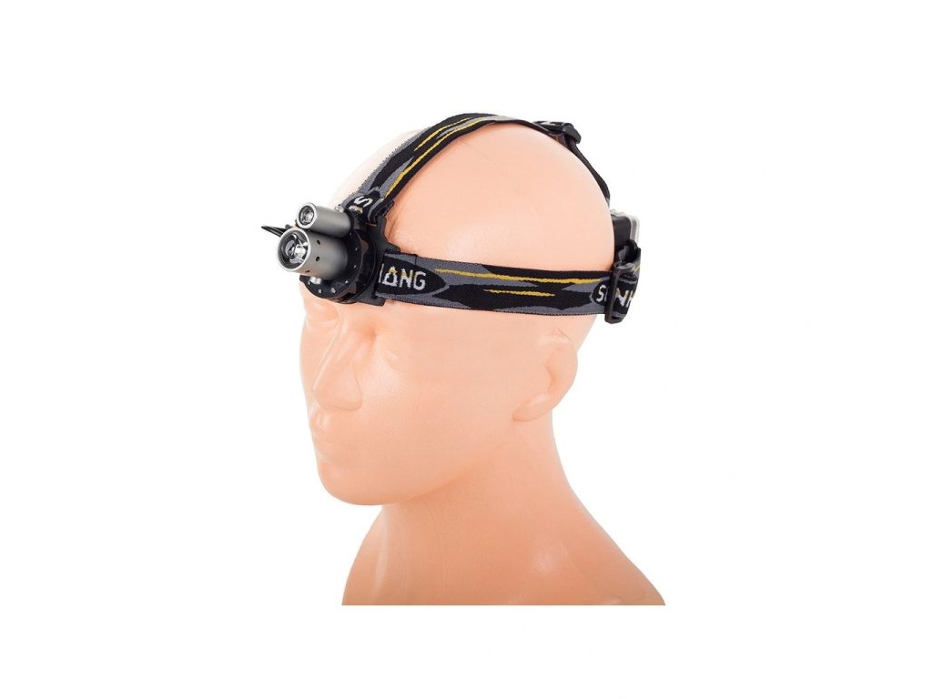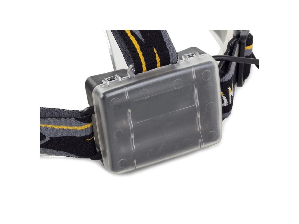 Má také nastavitelný úhel náklonu nahoru/dolů. Lehké a praktické. Jeho konstrukce zajišťuje stabilitu a zabraňuje sklouznutí svítilny z hlavy. Má také 2 elastické a nastavitelné popruhy. Koš na baterie umístěný na zadní straně hlavy znamená, že baterka má lepší rozložení hmotnosti nesklouzne z hlavy.
