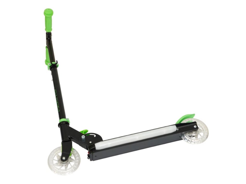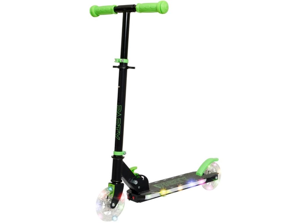 Dětská koloběžka Story LED se svítícími kolečky, Černo-zelená