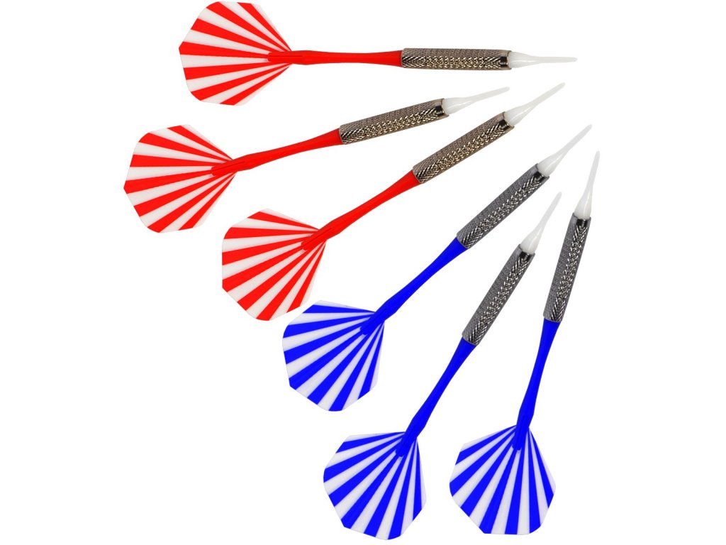 - Sada obsahuje: terč, 6 šipek (3 červené, 3 modré), 6 těl šipky, 6 překryvů (3 červené, 3 modré), 11 hrotů, 3 šrouby, návod