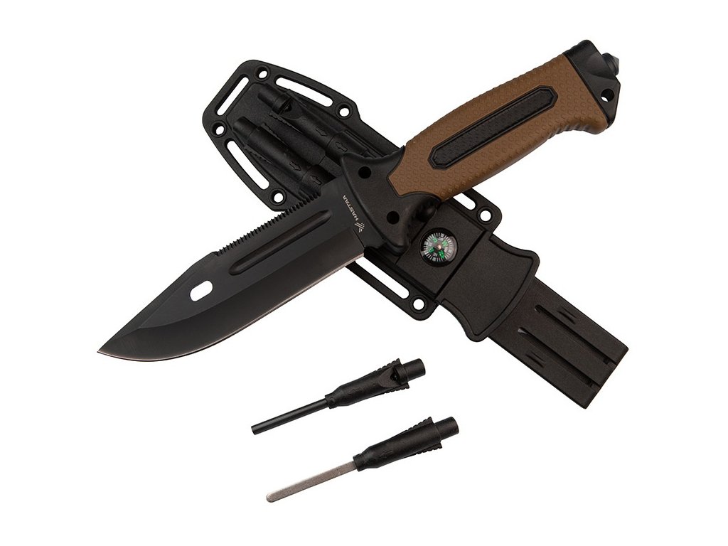 HASTAA Taktický nůž + podpalovač a brousek, 28 cm