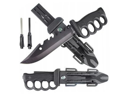 Vojenský taktický nůž BOWIE s mosaznou kloubovou rukojetí o celkové délce 33 cm.