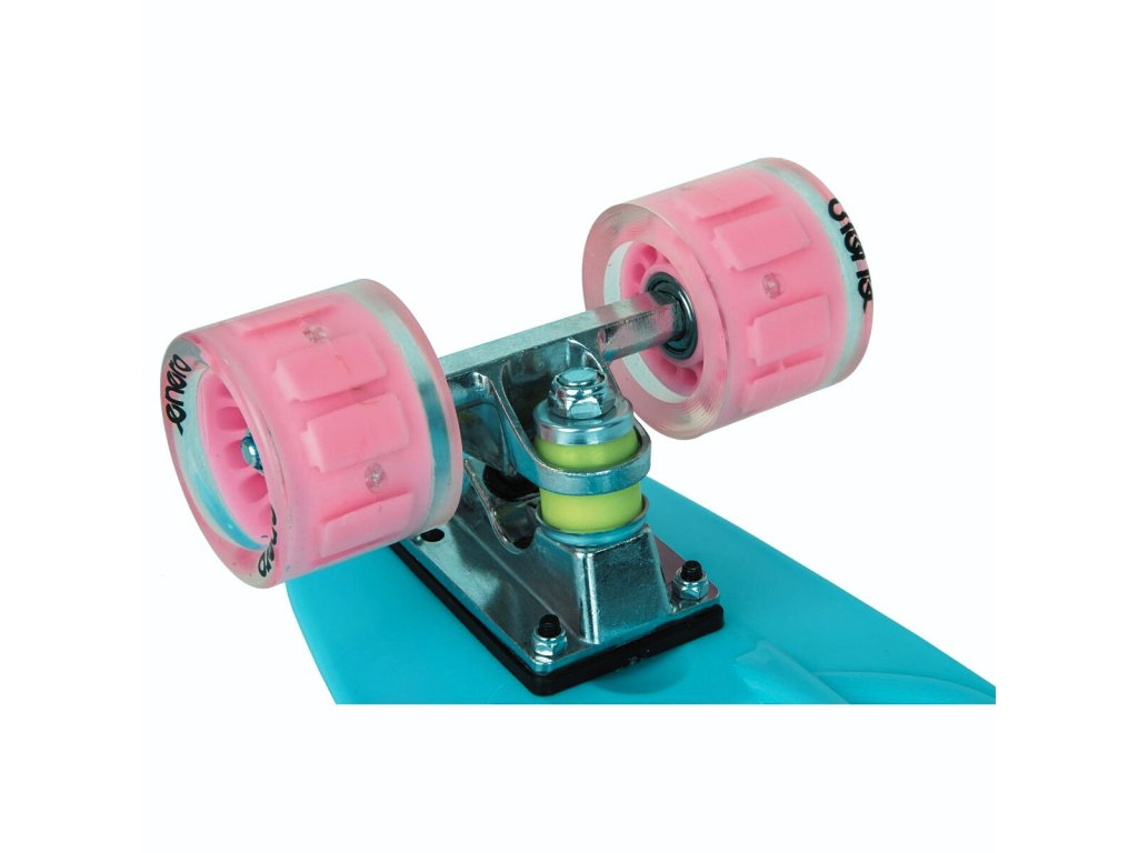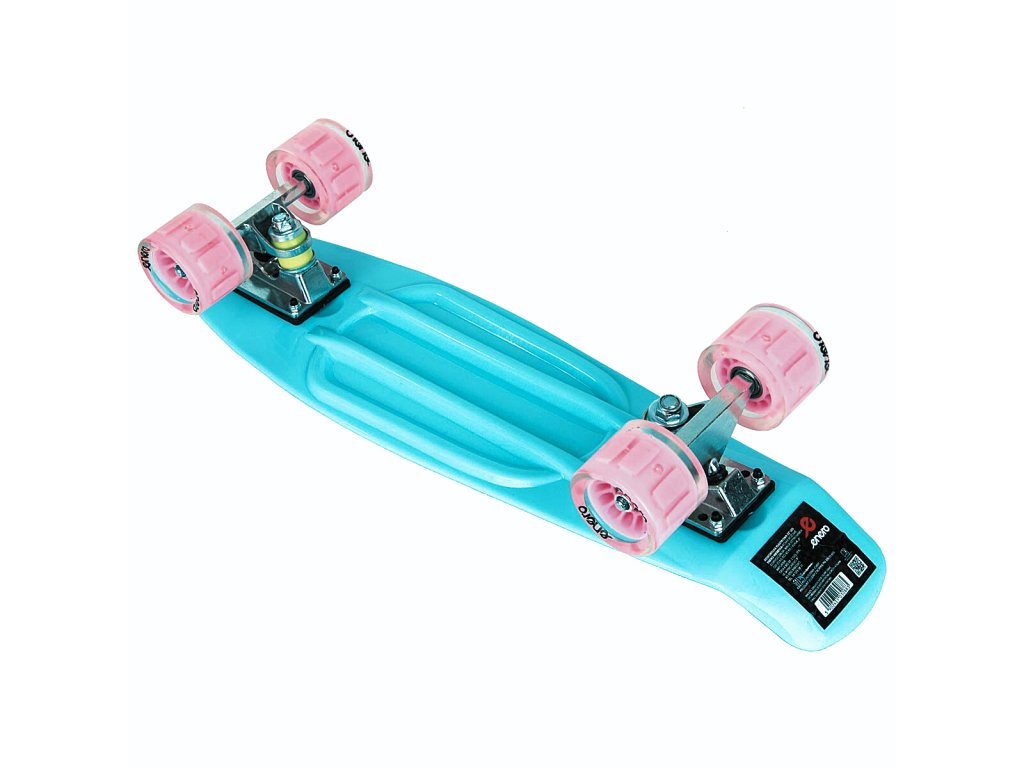 Tento pennyboard má zaručeně atraktivní a moderní nový design. Deska vyrobená z plastu zajišťuje vysokou odolnost skateboardu ve srovnání s tradičními modely vyrobenými z lepených dřevěných desek. Protiskluzový horní povrch zajišťuje abyste jste při jízdě neztratili trakci a stabilitu. Silná kola jezdí hladce po povrchu a jejich materiál je odolný proti poškození a oděru, díky čemuž zařízení vydrží déle. Malá velikost usnadňuje skladování a přepravu skateboardu, ať jste kdekoli. Další výhodou jsou LED kola, která zvyšují viditelnost a zároveň bezpečnost.