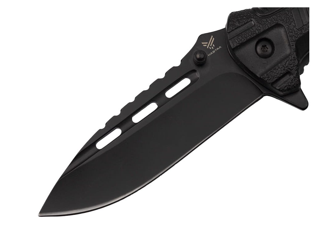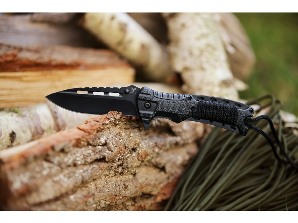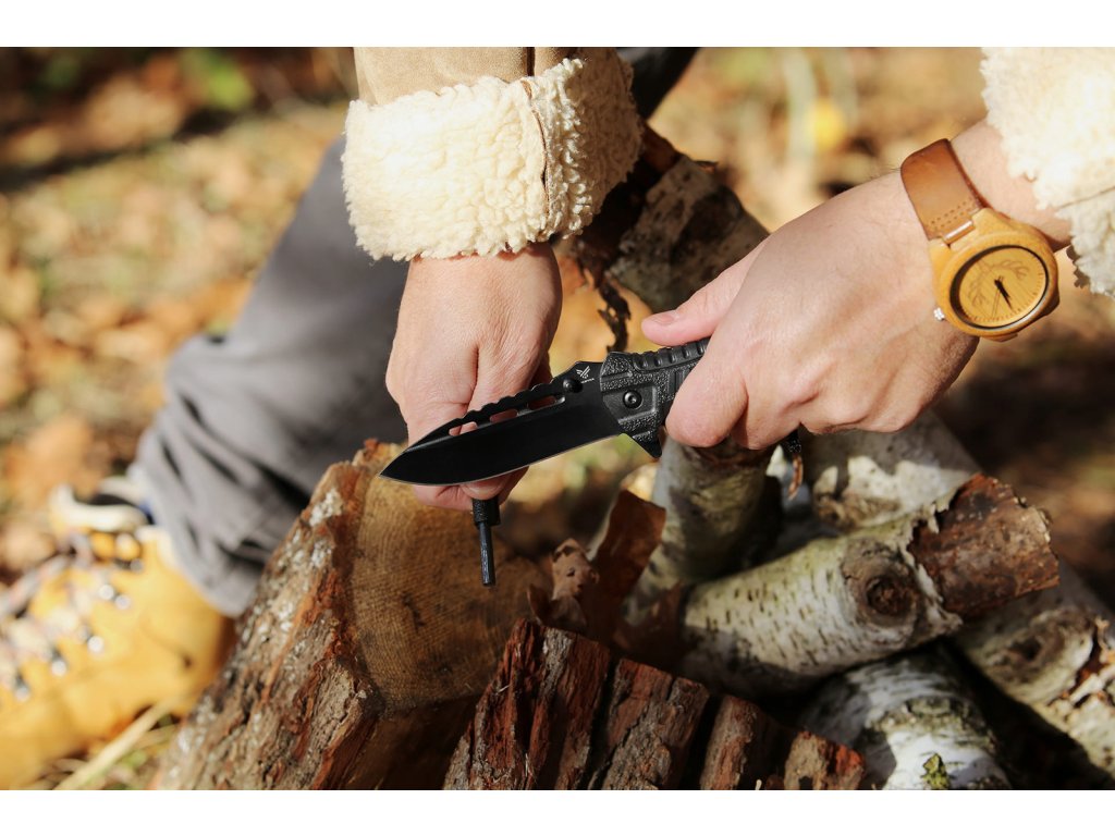 Skvěle navržená čepel s profilem drop point je vyrobena z vysoce kvalitní nerezové oceli 420J2, která je navíc pokryta černou vrstvou, která zabraňuje korozi a případným odleskům.