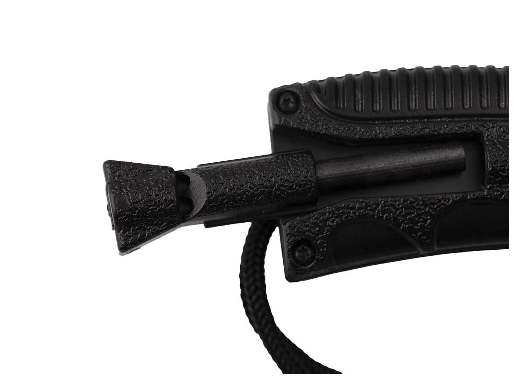 V survivalu je velmi důležitým aspektem optimalizace vybavení, proto byl nůž Hastaa pro úsporu místa vybaven nezbytnými prvky: píšťalkou, křesadlem a paracordovou šňůrou.