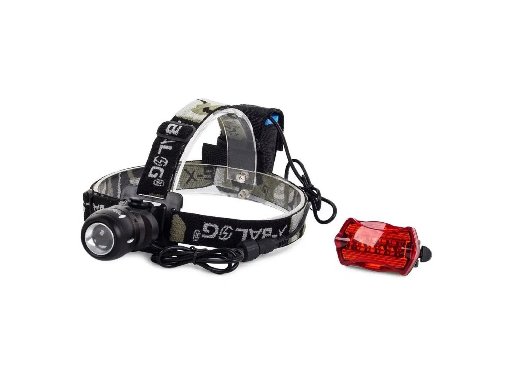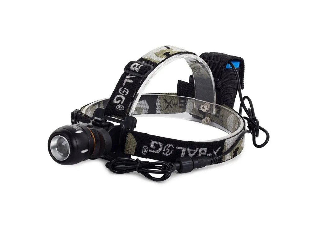 Lehké a praktické. Jeho konstrukce zajišťuje stabilitu a zabraňuje sklouznutí svítilny z hlavy. Má také 2 elastické a nastavitelné pásky, popis a baterii připojenou k baterce a namontovanou na zadní straně hlavy.