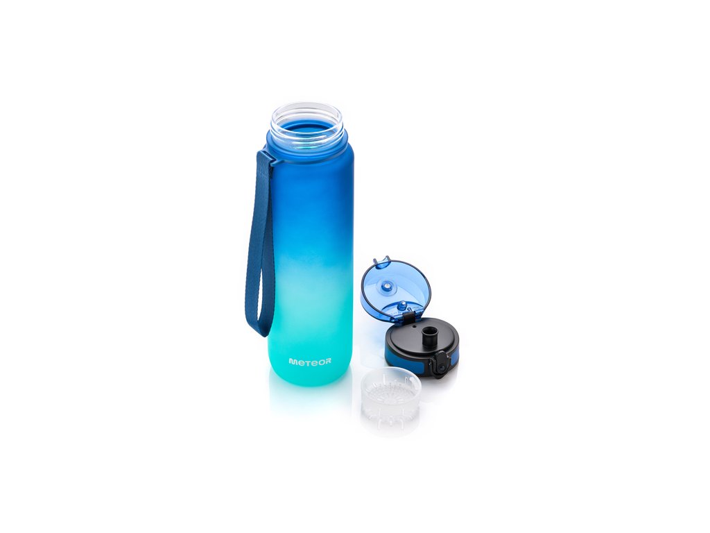 Praktickou sportovní láhev METEOR si můžete vzít s sebou prakticky kamkoliv. Láhev je průhledná s matným vzhledem a protiskluzovým povrchem. Speciální filtr neomezuje průtok nápoje, slouží pro snadné pití při přidání ovoce či kostek ledu. Má správnou velikost pro většinu jízdních kol, koloběžek a elektrokoloběžek.