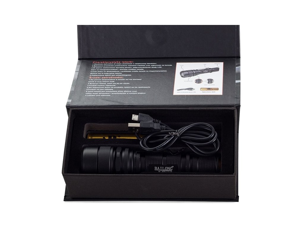 USB svítilna Bailong BL-603, led typu XML + USB nabíječka