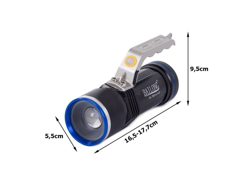 Vynikající baterka s vysokým jasem díky LED diodě CREE XM-L T6. Díky této LED diodě je spotřeba energie pouze 1/20 normální lampy. Životnost lampy činí zhruba 10 000 hodin. Dosah do 400 m s příznivými povětrnostními podmínkami. Pohodlná rukojeť s vypínačem. Plynulé nastavení zoomu rozšířením hlavy. Pohodlná rukojeť s vypínačem. Robustní pouzdro z odolné hliníkové slitiny.