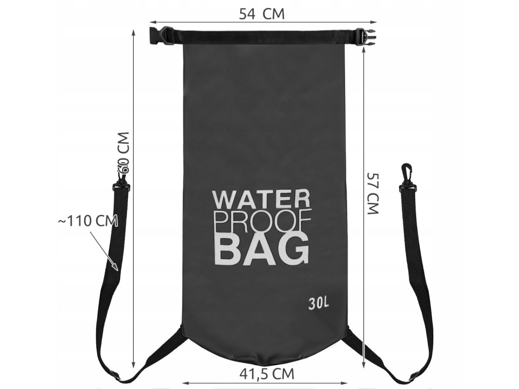 Vodotěsný nepromokavý vak je ideální pro letní rodinné výlety k jezeru, raftování na řece nebo dovolenou u moře, objem 30 l, vak je vyroben z PVC odolného vůči písku, štěrku a soli.