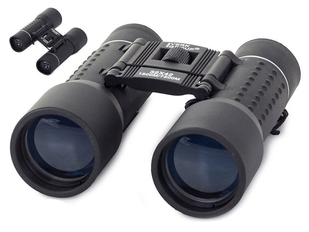 Dalekohled s přiblížením 32x42 a funkcí ZAOSTŘENÍ má kovový rám a kaučukem potažené pouzdro s neklouzavou ochrannou vrstvou.